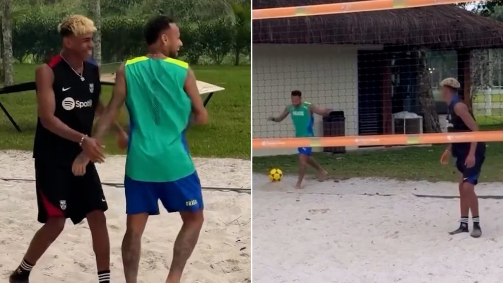 والتقى لامين جمال بالنجم السابق للبرسا ومهاجم سانتوس الحالي، في منزله بمدينة ريو دي جانيرو، وشارك النجمان متابعيهما صورا وفيديوهات تظهرهما يلعبان الكرة الطائرة بالقدم على الشاطئ ويتبادلان القمصان ويسبحان سويا.