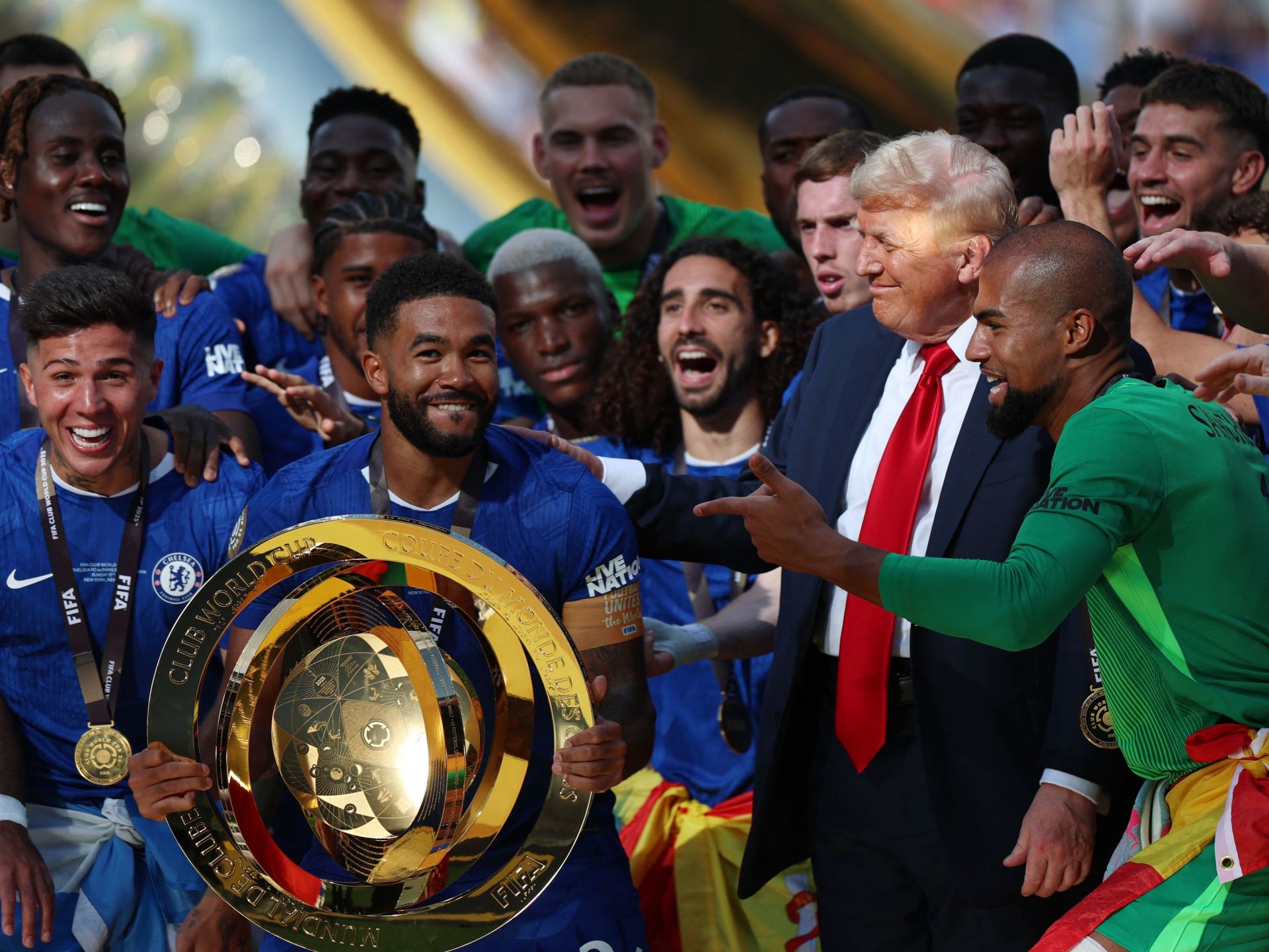 وتُوج تشلسي الإنجليزي أمس الأحد بلقب أول نسخة موسعة من مونديال الأندية عقب فوزه الكبير على باريس سان جيرمان الفرنسي 3-0 على ملعب ميتلايف في نيوجيرسي أمام أنظار ترامب.