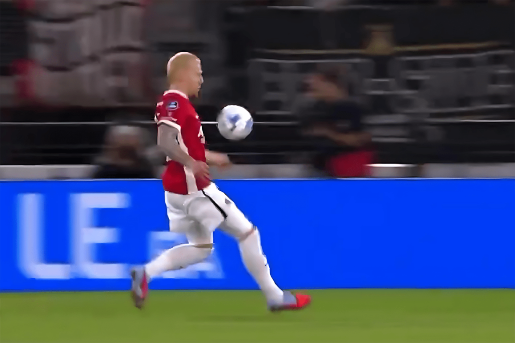 وعلى طريقة المهاجم الهولندي الشهير دينيس بيركامب، روّض ميردينك الكرة بقدمه قبل نزولها إلى الأرض وهيأها بفخذه ثم وضعها ساقطة من فوق حارس المرمى لتتهادى إلى الشباك.