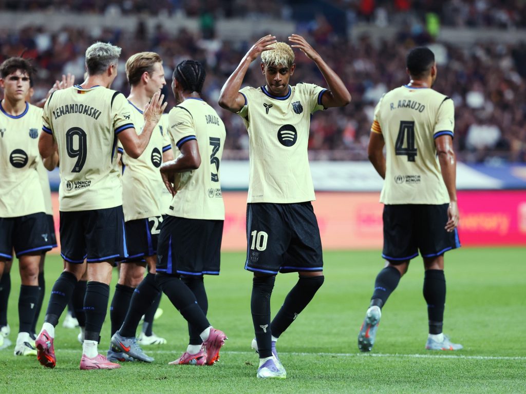 حقق لامين جمال ثنائية مع برشلونة في المباراة الودية الثانية للموسم التحضيري التي فاز فيها 7-3 على فريق سول الكوري الجنوبي، اليوم الخميس.