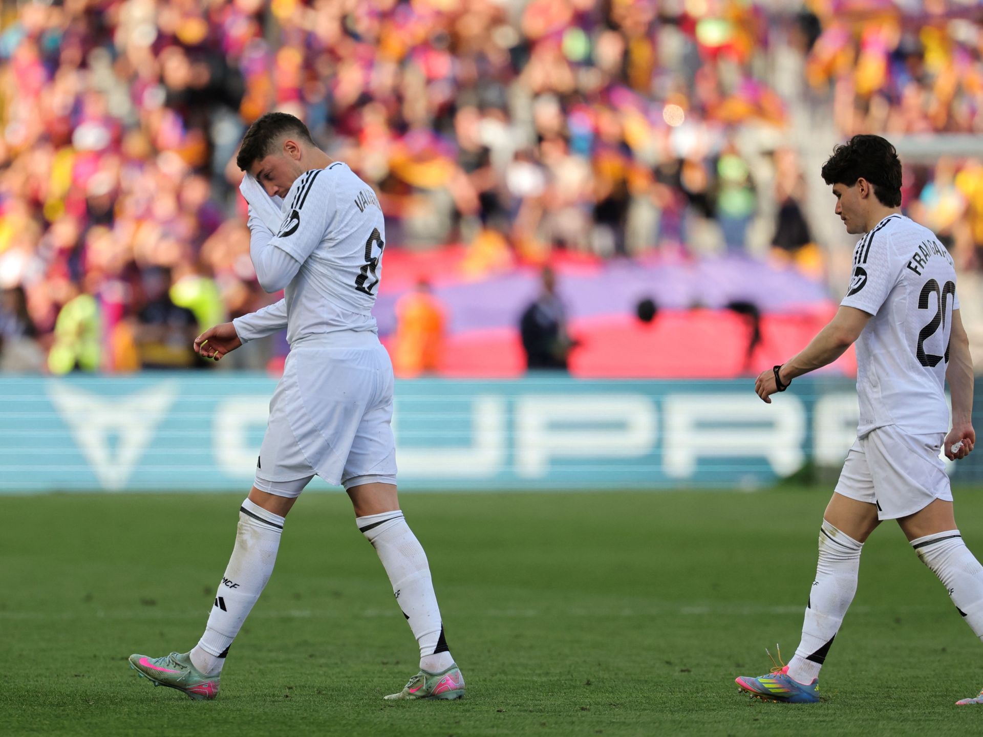 وغابت الشخصية والقوة عن ريال مدريد لمواجهة ضغط المنافس، ففي الكرات الثابتة تسمّر لاعبو الميرنغي في مناطقهم تشواميني وأسينسيو داخل منطقة الجزاء والأظهرة (فران غارسيا ولوكاس فاسكيز)، والنتيجة أن الكرة تُبعد ثم تعود للاعبي برشلونة.