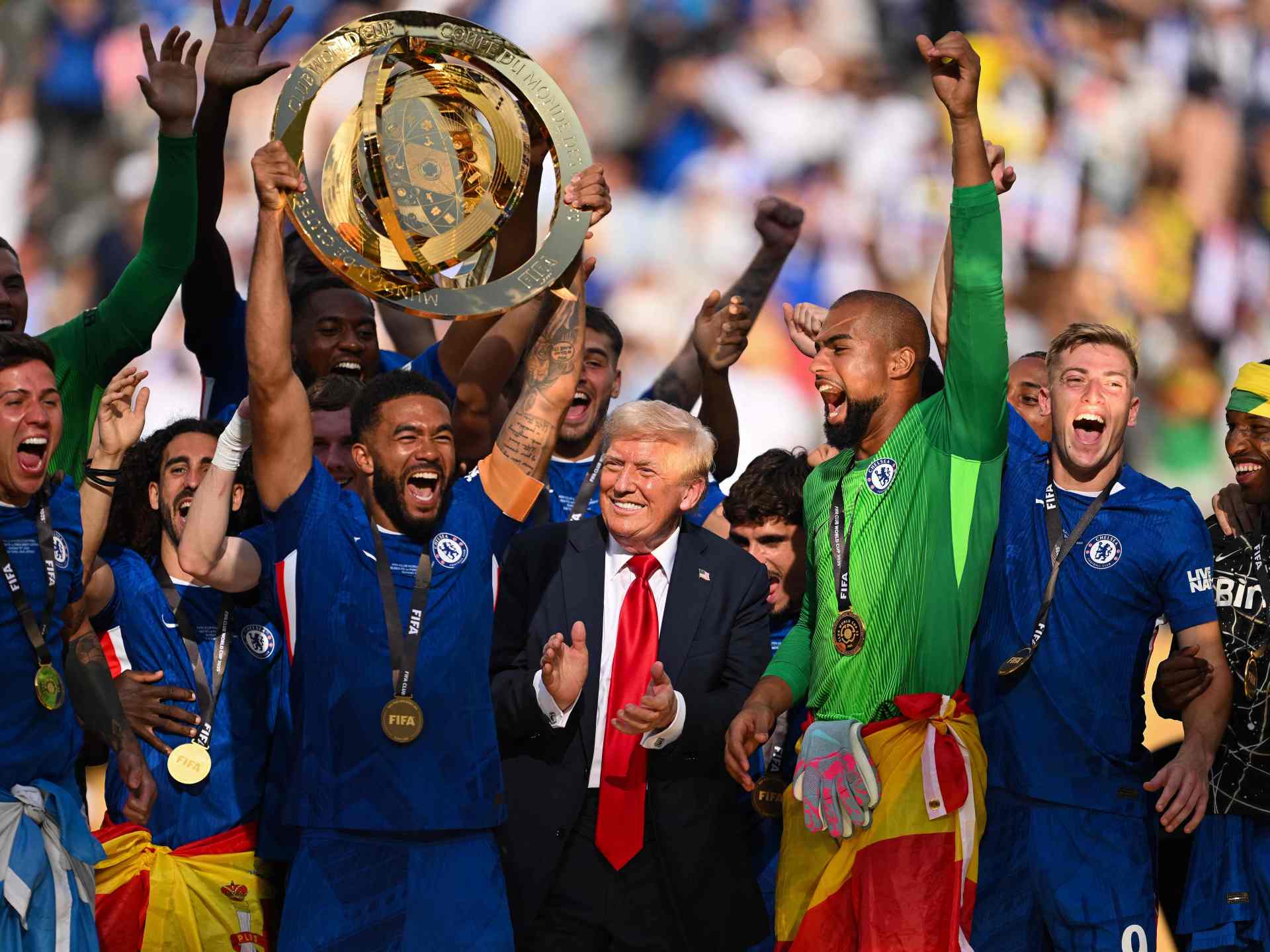 وقدم ترامب الكأس لريس جيمس قائد تشلسي، لكنه خالف البروتوكول المعتاد وظل بين اللاعبين المحتفلين بدلا من الابتعاد عن المنصة. وكان تشلسي فاز في النهائي على باريس سان جيرمان 3-صفر في النسخة الجديدة من بطولة مونديال الأندية.