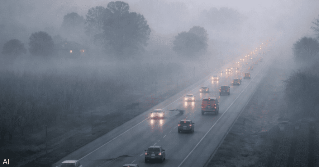 وأثّر الضباب على أكثر من 20 مقاطعة تمتد على مسافة تقارب 400 ميل، إذ يتشكل هذا النوع من الضباب عندما تبرد الأرض بسرعة بعد غروب الشمس، ما يؤدي إلى تكاثف الرطوبة قرب سطح الأرض وتشكّل طبقة كثيفة تحدّ من الرؤية.