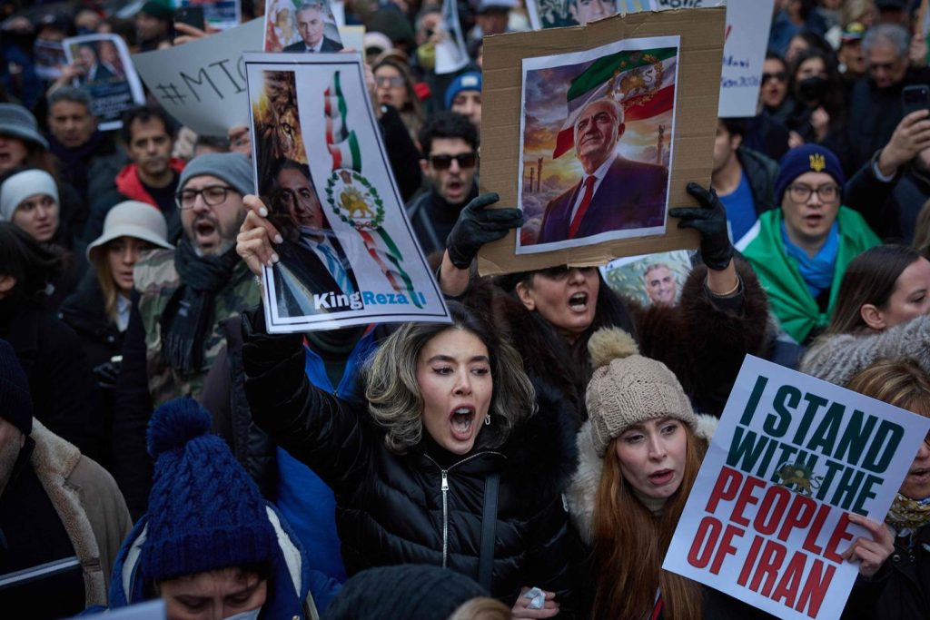 تظاهر أكثر من ألفي شخص، الأحد 11 يناير/كانون الثاني، في باريس، تلبية لدعوة من أنصار نجل شاه إيران السابق والمعارض الإيراني المقيم في المنفى في الولايات المتحدة، رضا بهلوي، لدعم حركة الاحتجاج المستمرة في إيران، على خلفية صيحات “لا للجمهورية الإسلامية الإرهابية”.